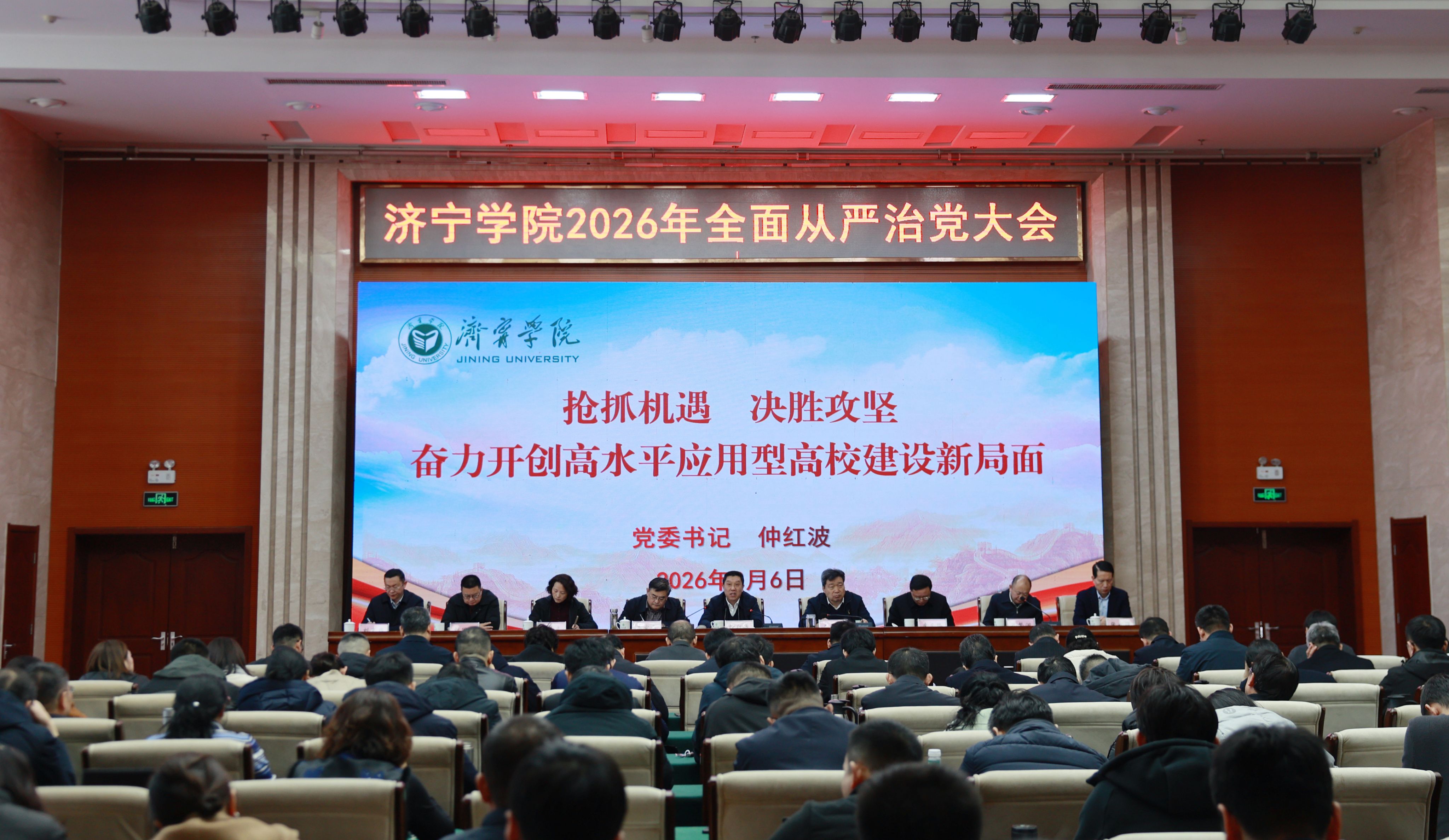 3月6日,学校在科技文化大楼学术报告厅召开2026年全面从严治党大会。党委书记仲红波出席会议并讲话。党委副书记丰家雷主持会议。校领导班子成员、处级领导干部以及各部门、二级学院相关人员参加会议。